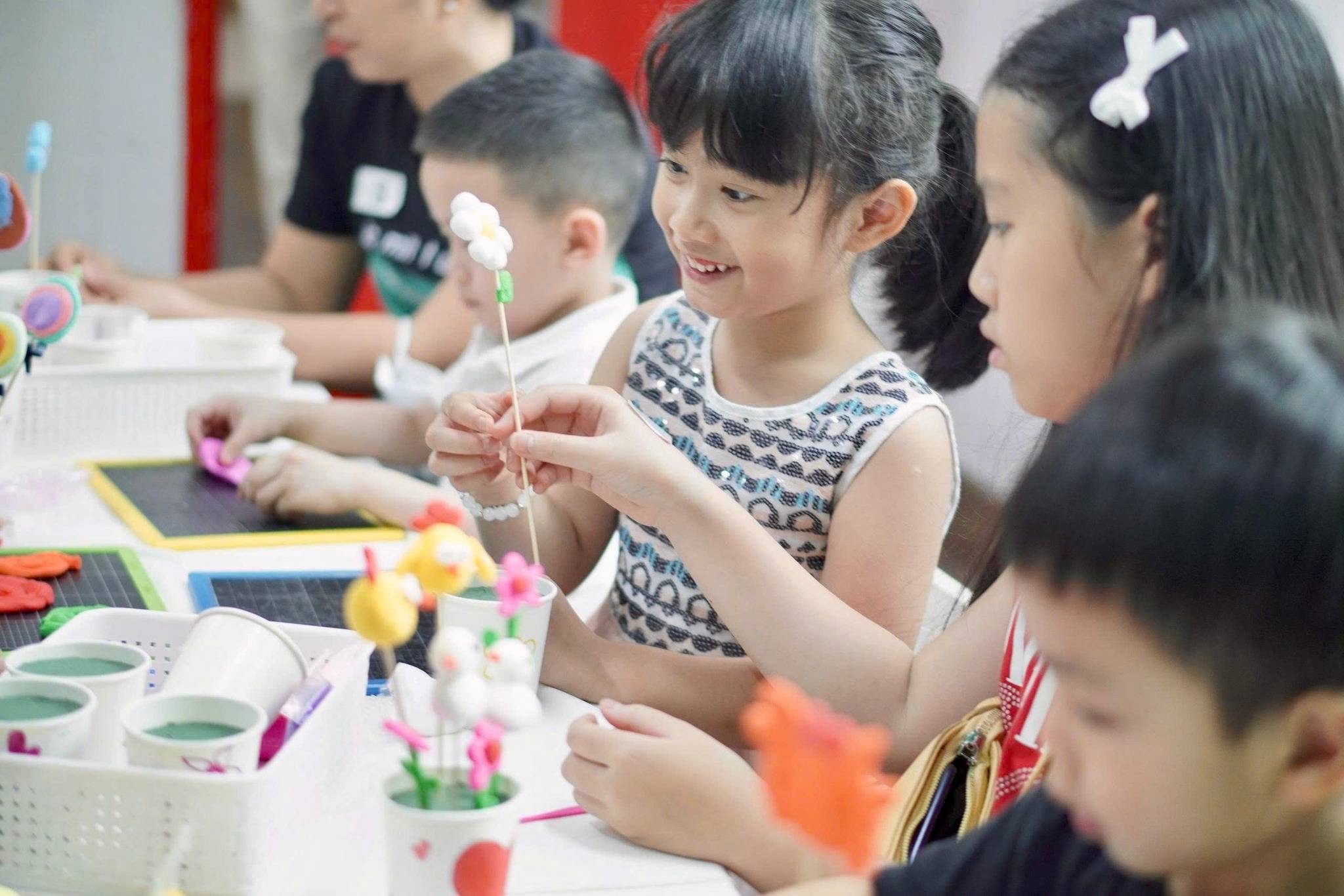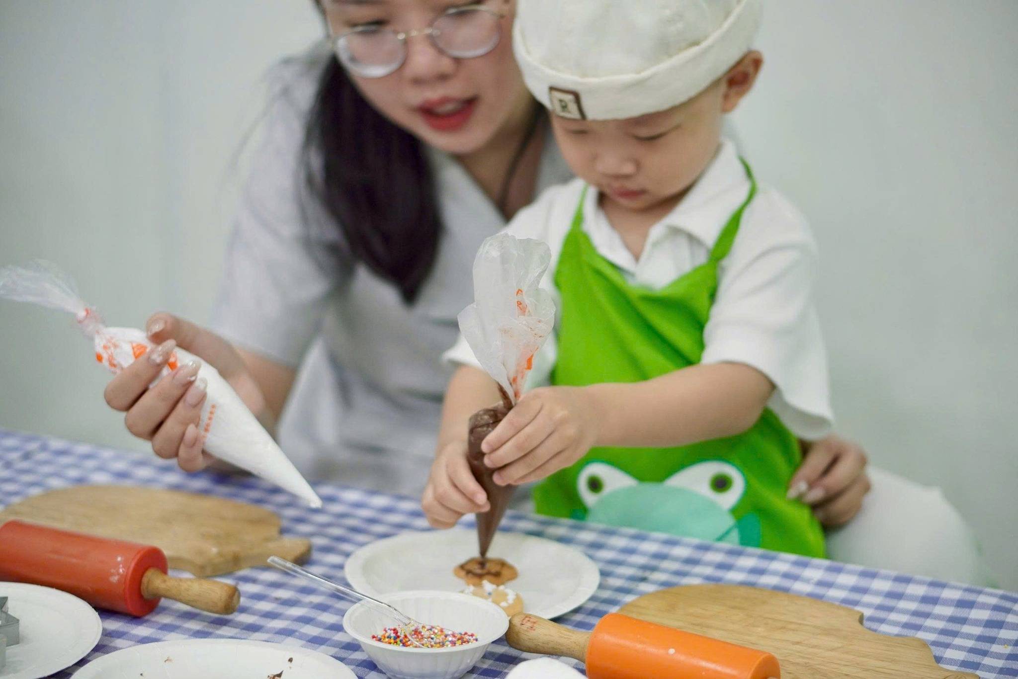 Ba mẹ và con cùng trang trí bánh, nặn phối màu hoa đất sét